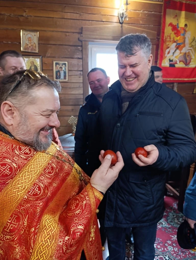 «Христос Воскресе! Пусть пасхальная радость укрепляет всех, кто сегодня несет службу», — обратился к собравшимся протоиерей Михаил Андрусь.