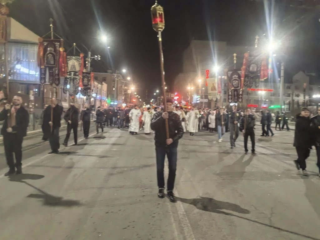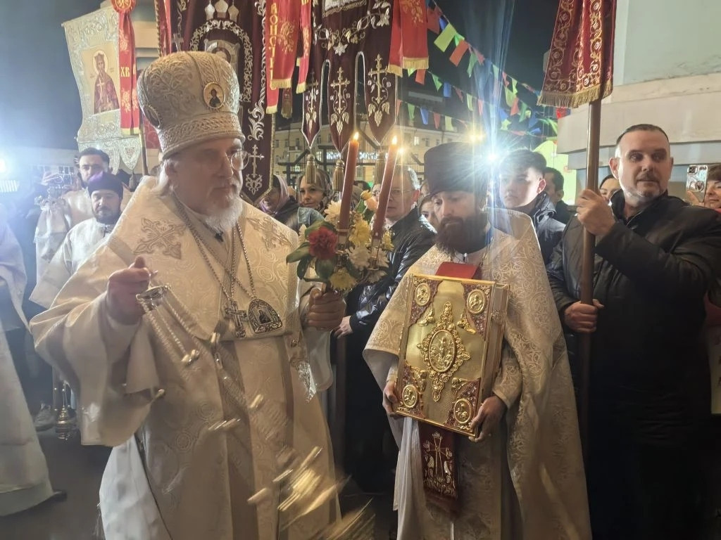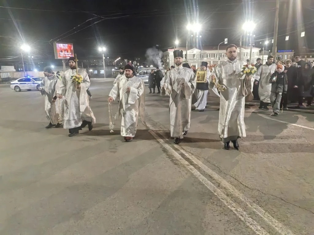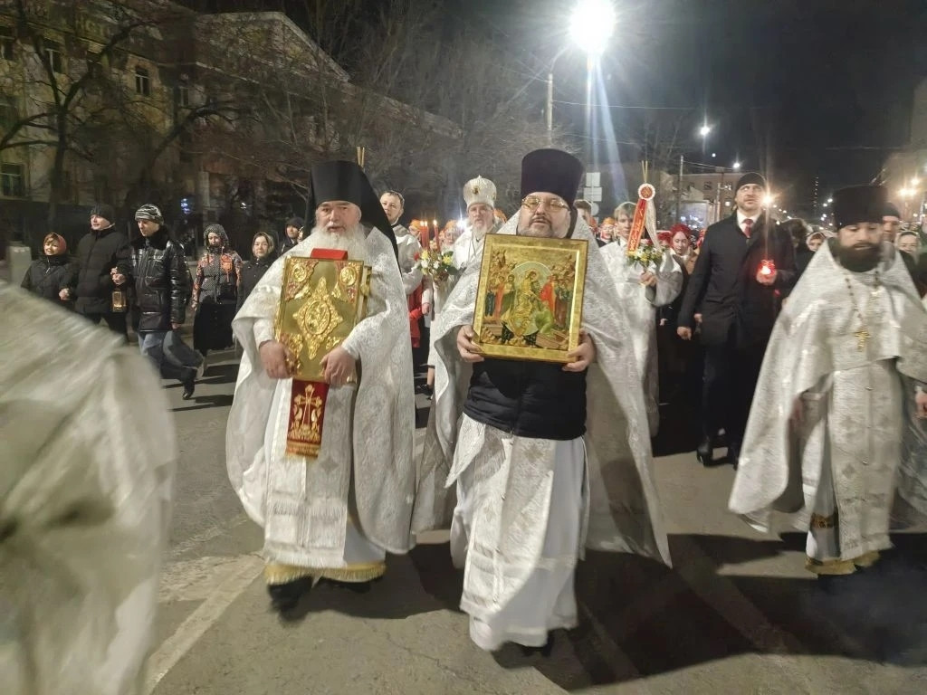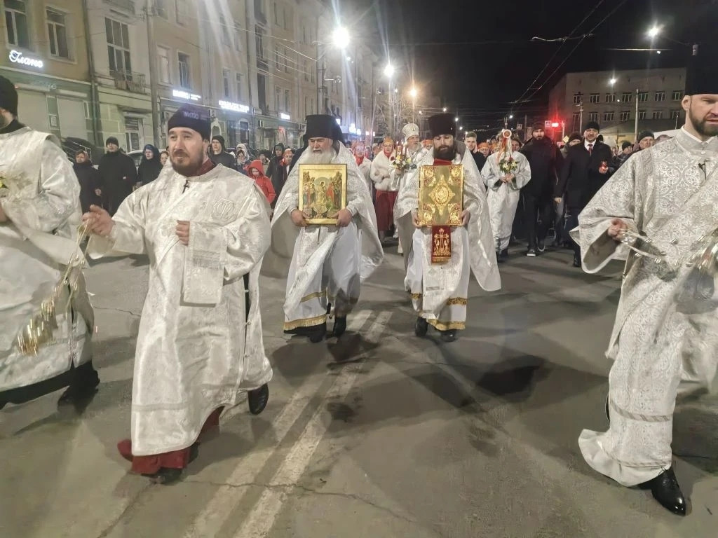 Митрополит Читинский и Петровск-Забайкальский Димитрий возглавил торжественное Пасхальное богослужение в ночь с 11 на 12 апреля, в кафедральном Казанском соборе города Читы, в сослужении духовенства и прихожан собора.