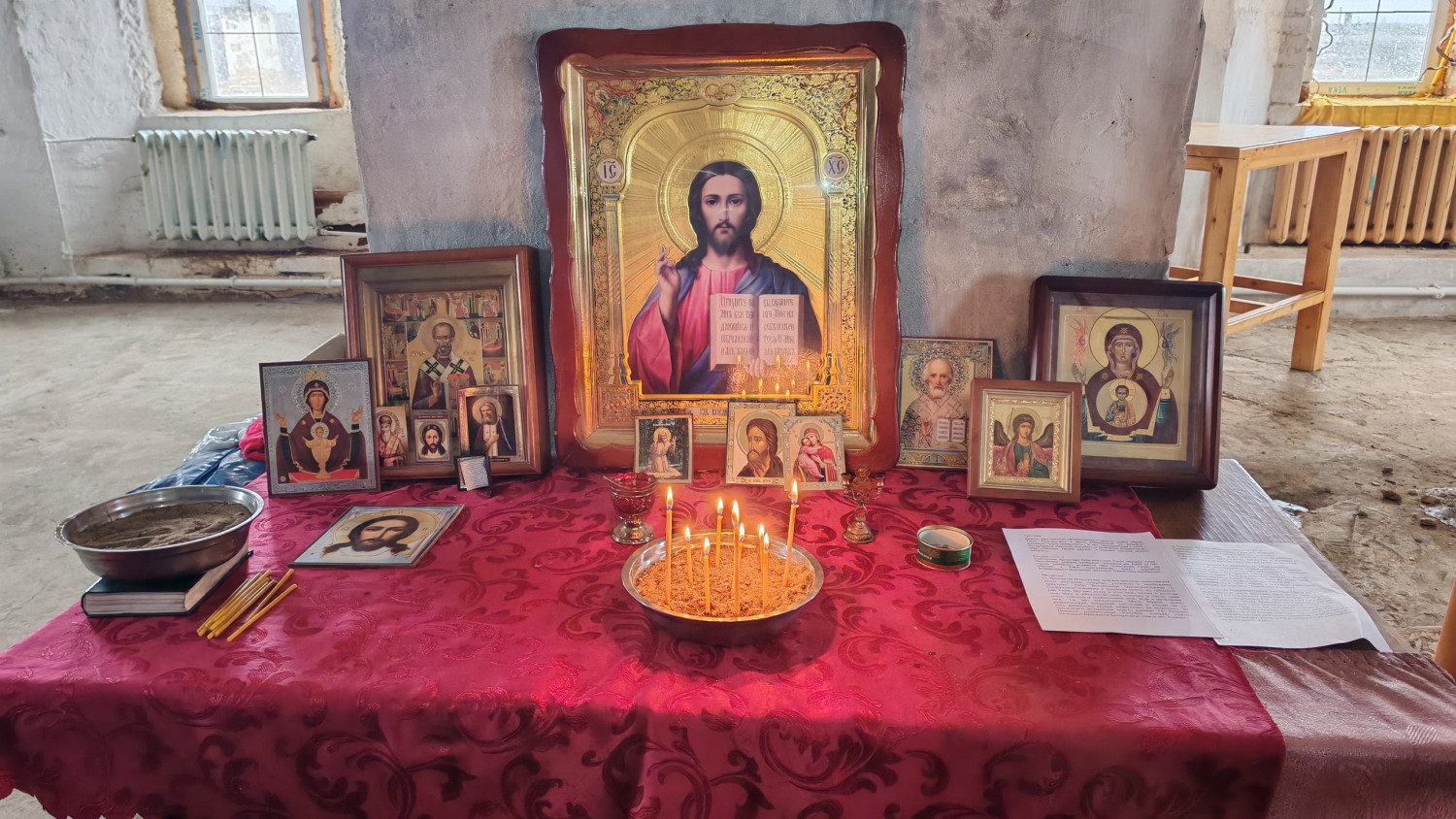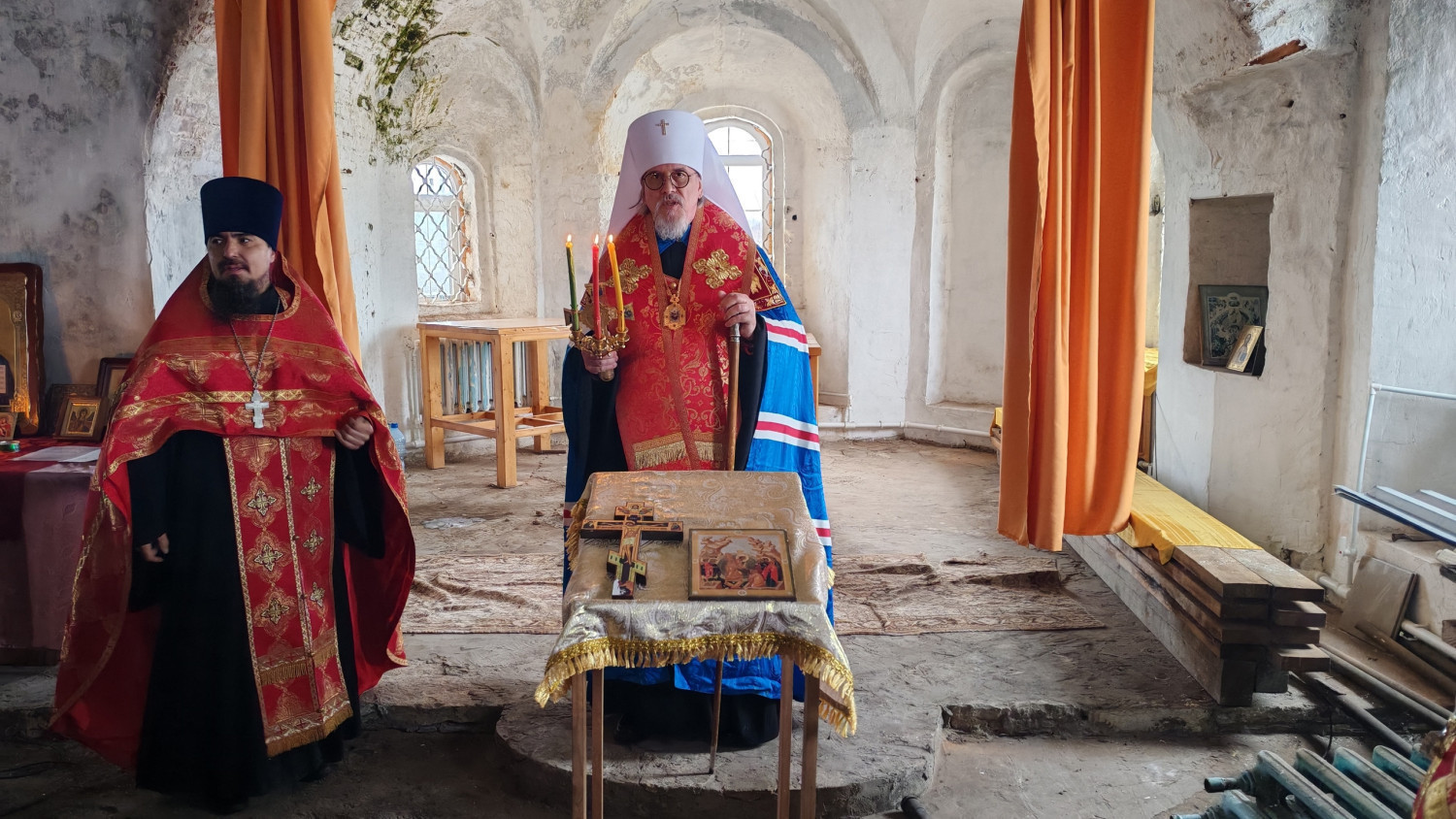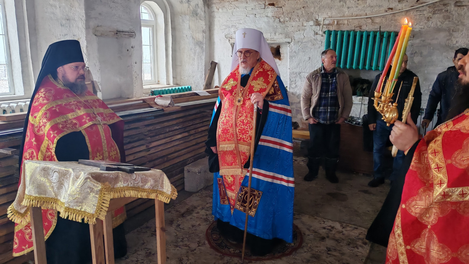 Митрополит Читинский и Петровск-Забайкальский Димитрий возглавил Часы святой Пасхи в востанавливаемом храме Нерчинской епархии в честь иконы Божией Матери Знамение в селе Знаменка.