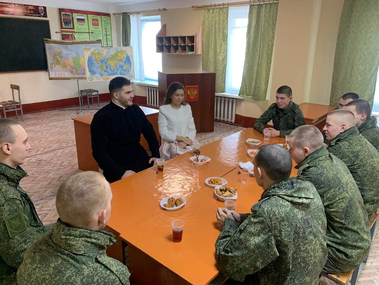 7 января 2026 года сотрудники Читинской епархии Сергей и Татьяна Медведевы с праздничным визитом посетили 344 военную школу поваров военного Восточного округа и поздравили военнослужащих срочного призыва с Рождеством Христовым.