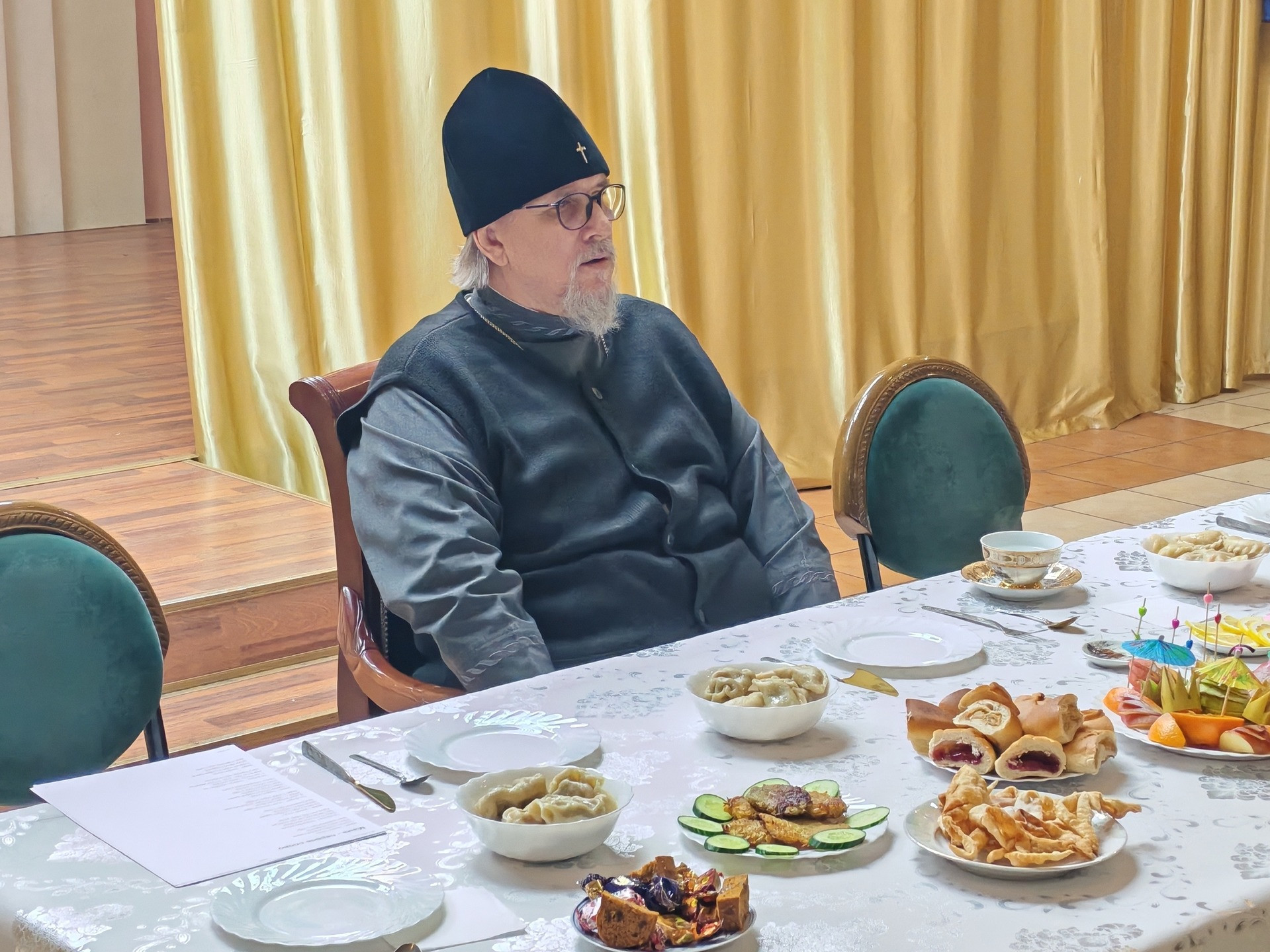 8 марта 2026 года, в Казанском кафедральном соборе города Читы по завершении Божественной литургии митрополит Читинский и Петровск-Забайкальский Димитрий, духовенство храма и прихожане объединились за общей трапезой.