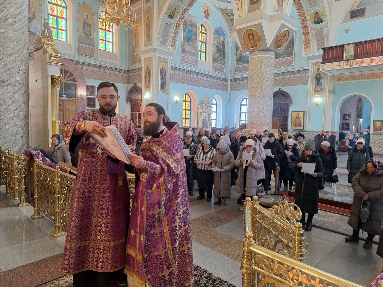 Вечером, 14 марта 2026 года, в канун Недели 3-й Великого поста, Крестопоклонной, духовенство кафедрального собора Казанской иконы Божией Матери города Читы совершило всенощное бдение с чином выноса Честного и Животворящего Креста Господня.