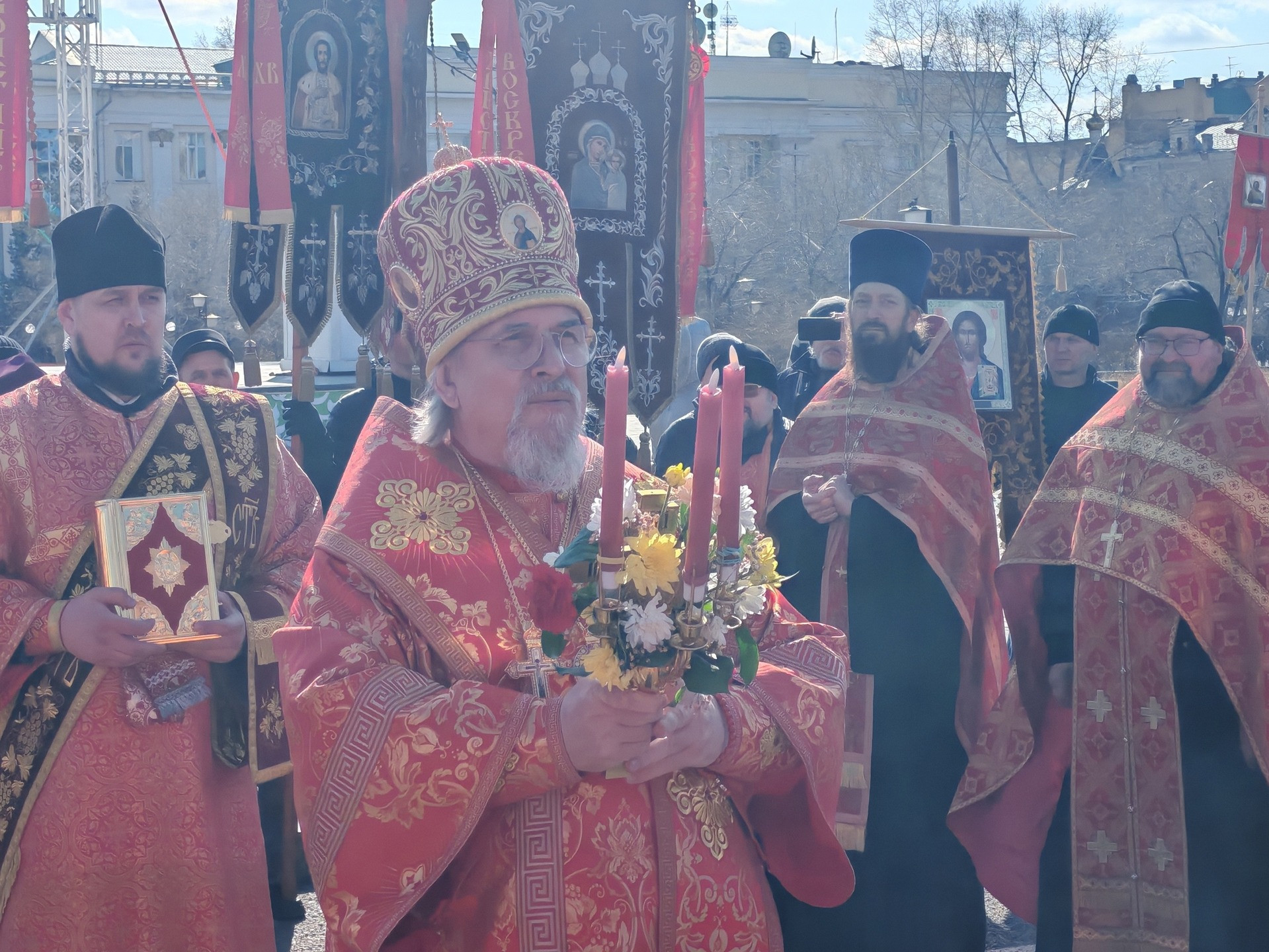 12 апреля 2026 года, митрополит Читинский и Петровск- Забайкальский Димитрий возглавил Пасхальный крестный ход. Праздничное шествие стало кульминацией светлой радости.